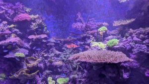 サンゴ礁の展示ブースのライトは青色、ピンク色の2種類でした。