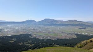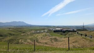 緩やかな坂を登り、行きついた先からは阿蘇市の大パノラマが見えました。阿蘇市の街並みが一望できとても美しい景色でした。