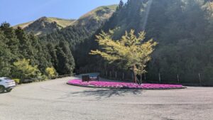大観峰に一番近い駐車場に駐車しました。朝早く訪れたため車やバイクが少なかったです。