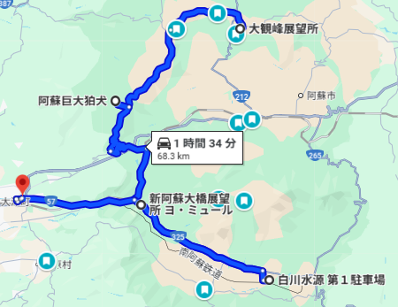 阿蘇山を様々な角度から見ることができるコースでした。走行距離は68kmで短いですが、立ち寄った場所でゆっくりと散策できたので良かったです。