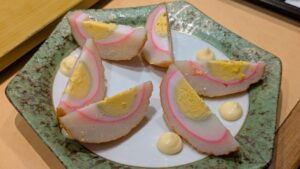 このお店で一番衝撃的だった一品ものは「ばくだん」です。ゆでたまごを魚のすりみで包み込んだものです。味は想像通りで美味しかったです。見た目がかわいくて、この料理を考えた人はセンスが良いと思いました。