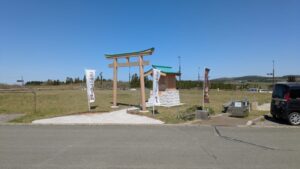駐車場の中央に鳥居がありましたが、材料がピカピカで新しいようだったので、観光名所にするために何か作っているようでした。